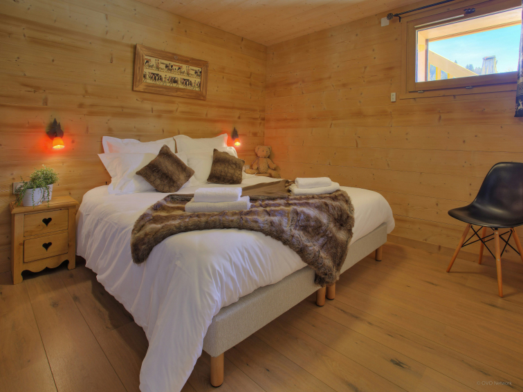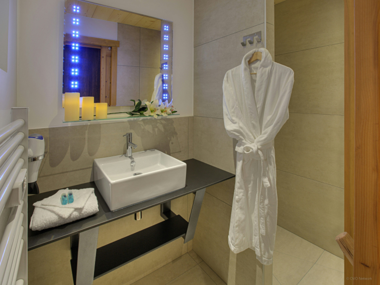 The two lounge areas are equipped with a bar, a dance floor and a comfortable sitting area near the fireplace. The fully equipped kitchen opens onto the dining area, which can accommodate all guests around the table. Large windows open onto the terrace. There is also a shower room on this level and separate toilets on each floor. The ski room has a boot dryer and storage for your equipment. A secure bike shed is available with charging points for electric bikes.
