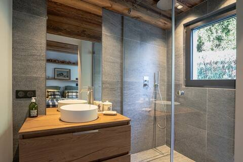 Layout: - Comprising a large entrance hall - A large living/dining room/open kitchen fully equipped with a bar - A first bedroom with double bed (160x200) and en-suite shower room. - A second bedroom with a double bed (160x200) and en-suite shower room - The third bedroom (cabin) has two bunk beds (90x190) - Laundry room with washing machine/dryer and ski room with heated shoe dryer. -Comfortable outdoor parking, WiFi, 150m2 garden and 30m2 terrace.