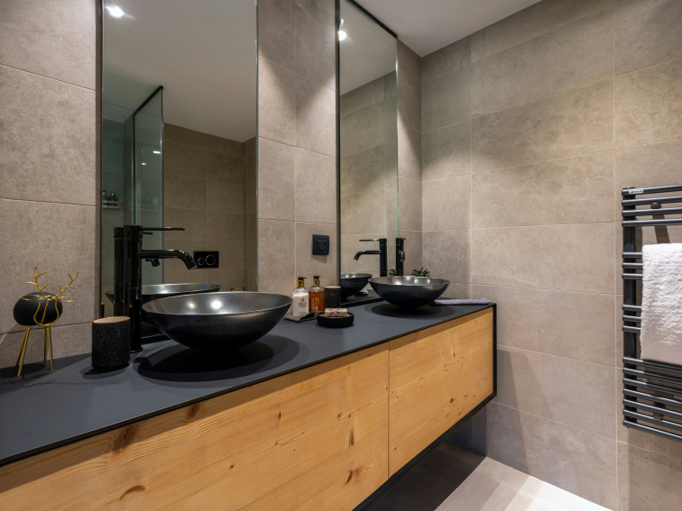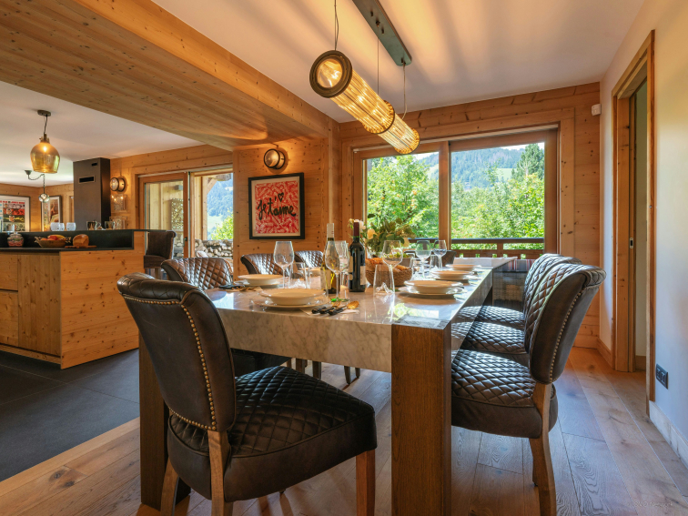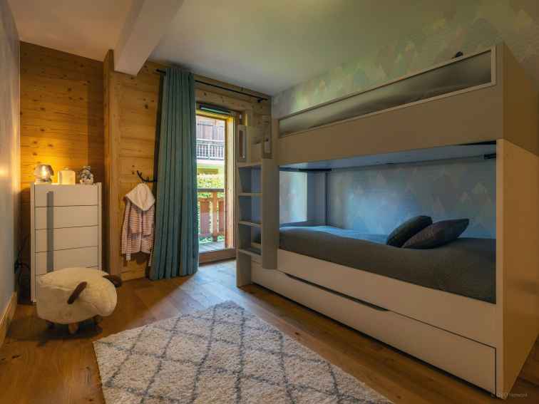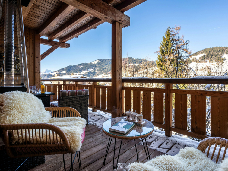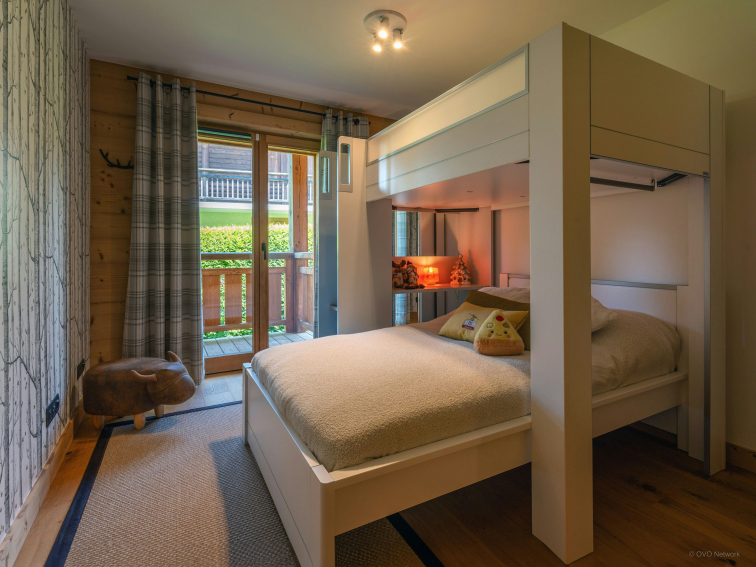 Sundance Kid Loft is a spacious nine-person apartment on the second floor of a central building in Megève. It has four bedrooms and four bathrooms.