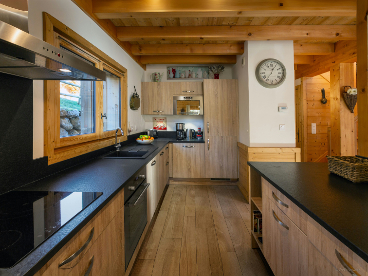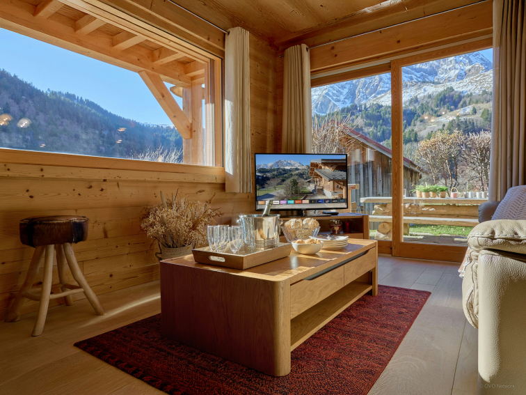 A ski room with heated boot dryer lets you shed your outdoor gear. Then return to the comfort of the sauna or the living room, which contains two sofas, a TV, a wood-burning stove and a dining table. The open-plan kitchen has everything you'll need, including an induction hob, two coffee machines and a dishwasher. Two French windows let in light and open onto a garden, equipped with a second dining table.