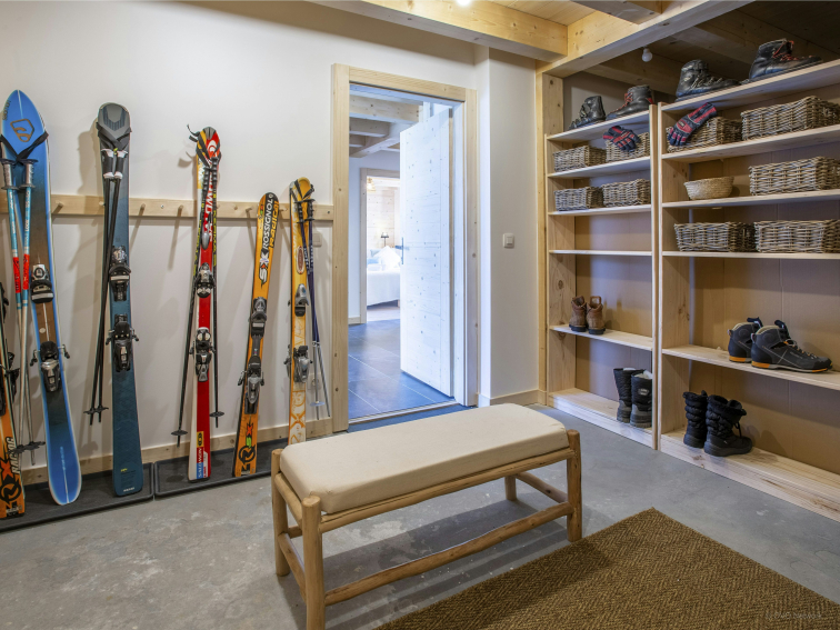 Au premier étage, une troisième chambre double comprend une télévision et un accès privé au balcon, où vous pourrez profiter du magnifique panorama alpin. À cet étage aussi, se trouvent une salle de douche et des toilettes séparées.