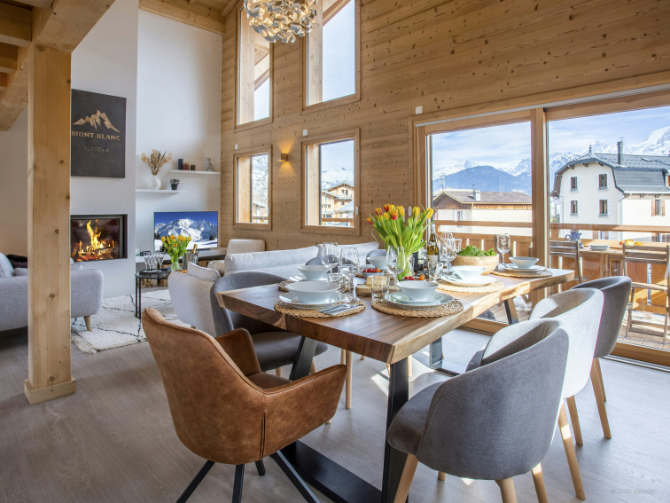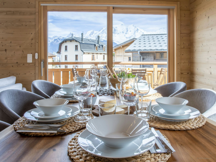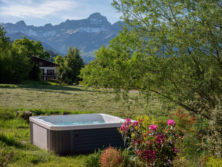 Dans le jardin à l'extérieur, un jacuzzi vous permettra de vous détendre tout en profitant de la vue magnifique sur le Mont Blanc.
