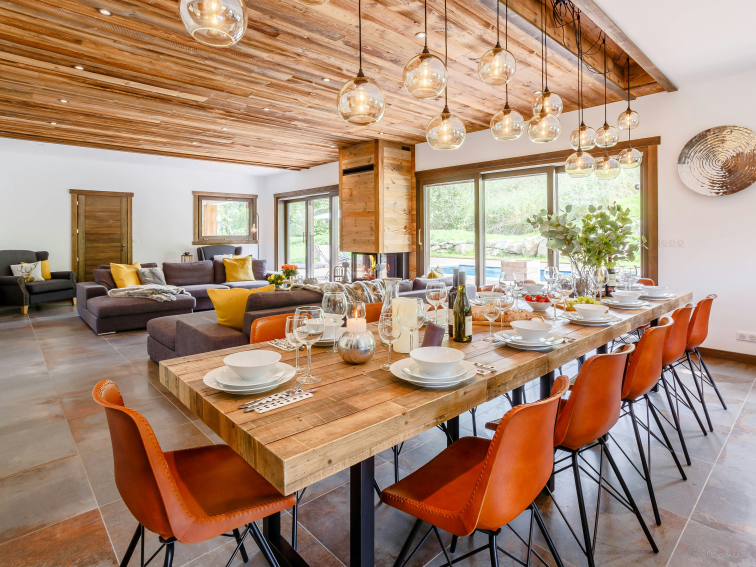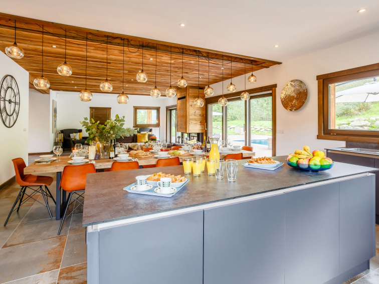 L’espace ne manque pas au Chalet Woodman ! La vaste pièce de vie, baignée de lumière grâce à ses grandes baies vitrées, s’ouvre sur la terrasse. Vous pourrez vous retrouver confortablement installés dans les grands canapés, parfaits pour partager des moments conviviaux en famille ou entre amis. La cuisine moderne et élégante, entièrement équipée, ainsi que la buanderie, ajoutent au confort du chalet.