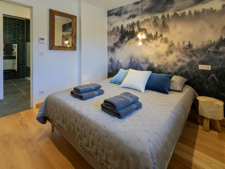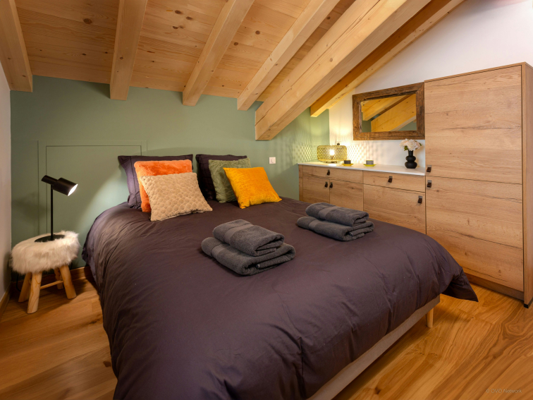 Vous trouverez une chambre double avec salle de douche attenante au premier étage, et 2 chambres doubles supplémentaires au dernier niveau, dont l’une bénéficie d’un balcon privé. Une salle de jeux avec télévision est également aménagée sous le toit.