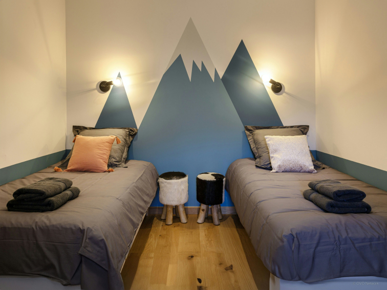 Les 2 chambres du rez-de-chaussée se partagent une salle de douche et des toilettes. L'une de ces chambres est idéale pour les enfants, grâce à ses lits jumeaux et sa salle de télévision séparée.