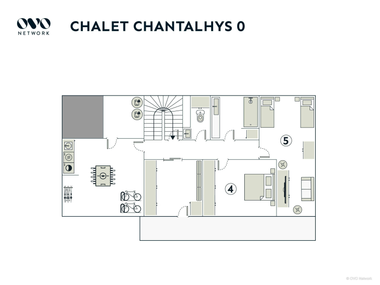 Le garage du chalet a été reconverti en local à skis et à vélos, avec une buanderie et une deuxième salle de jeux. En raison de la pente raide autour du chalet, celui-ci ne dispose pas de jardin, mais vous trouverez des balcons sur 2 étages pour profiter du panorama, et une aire de stationnement qui peut accueillir plusieurs voitures. En hiver, les chaînes et pneus neige sont indispensables.