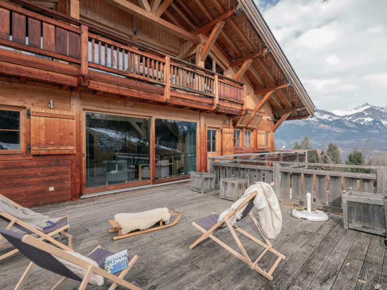 Entourée d’une large terrasse panoramique, la pièce de vie lumineuse s’ouvre sur les montagnes grâce à de hautes baies vitrées. Deux salons dialoguent autour d’une cheminée centrale, tandis que l’espace repas séparé compte une cuisine ouverte et spacieuse ainsi qu’une grande table à manger qui peut rassembler toute la famille.