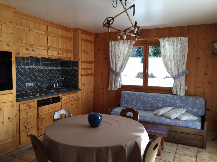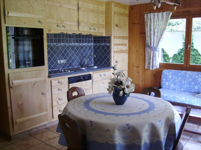 Appartement de plain pied avec accès direct sur parc clos de 1000 m. Intérieur de caractère montagne,meublé dans le style du pays.